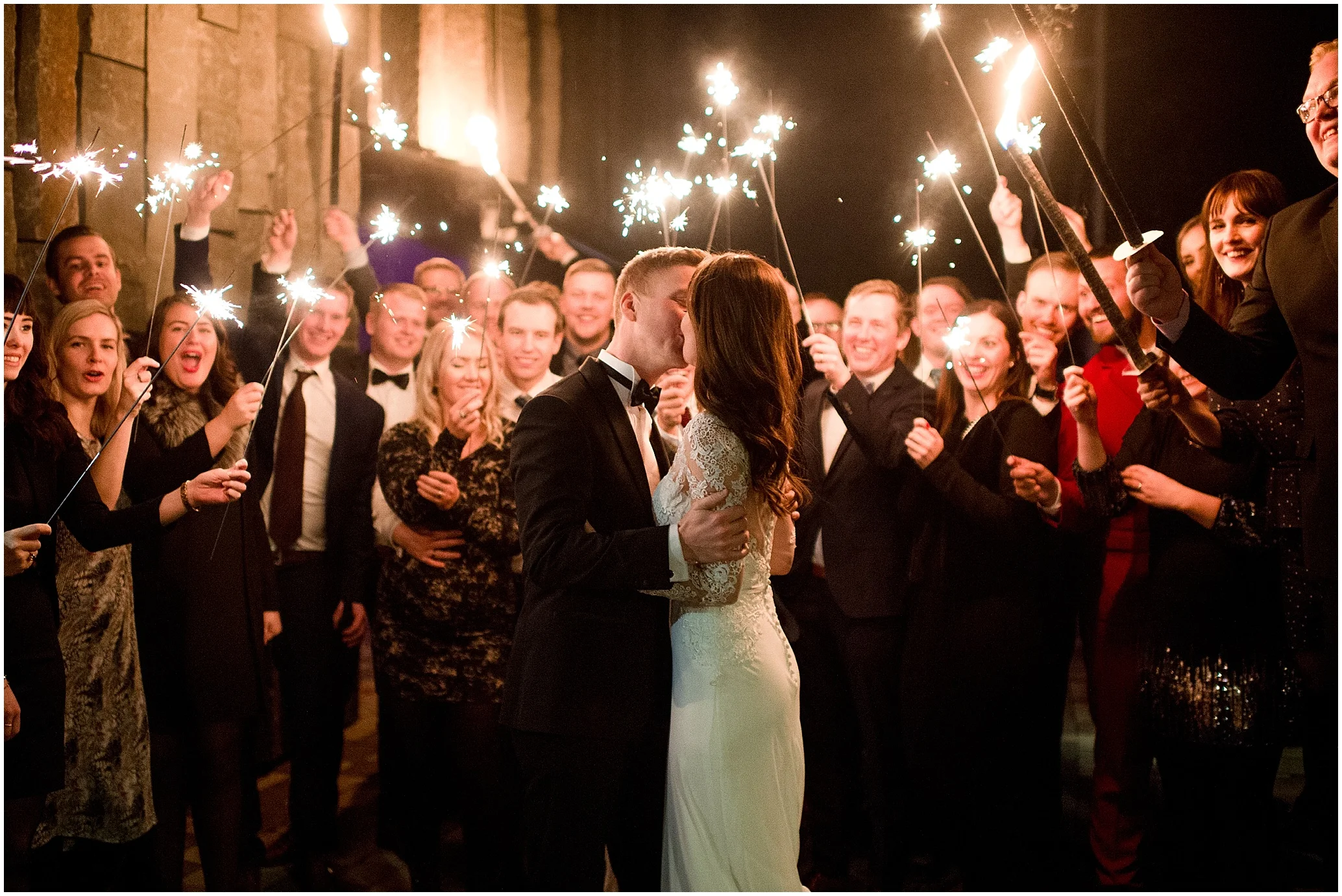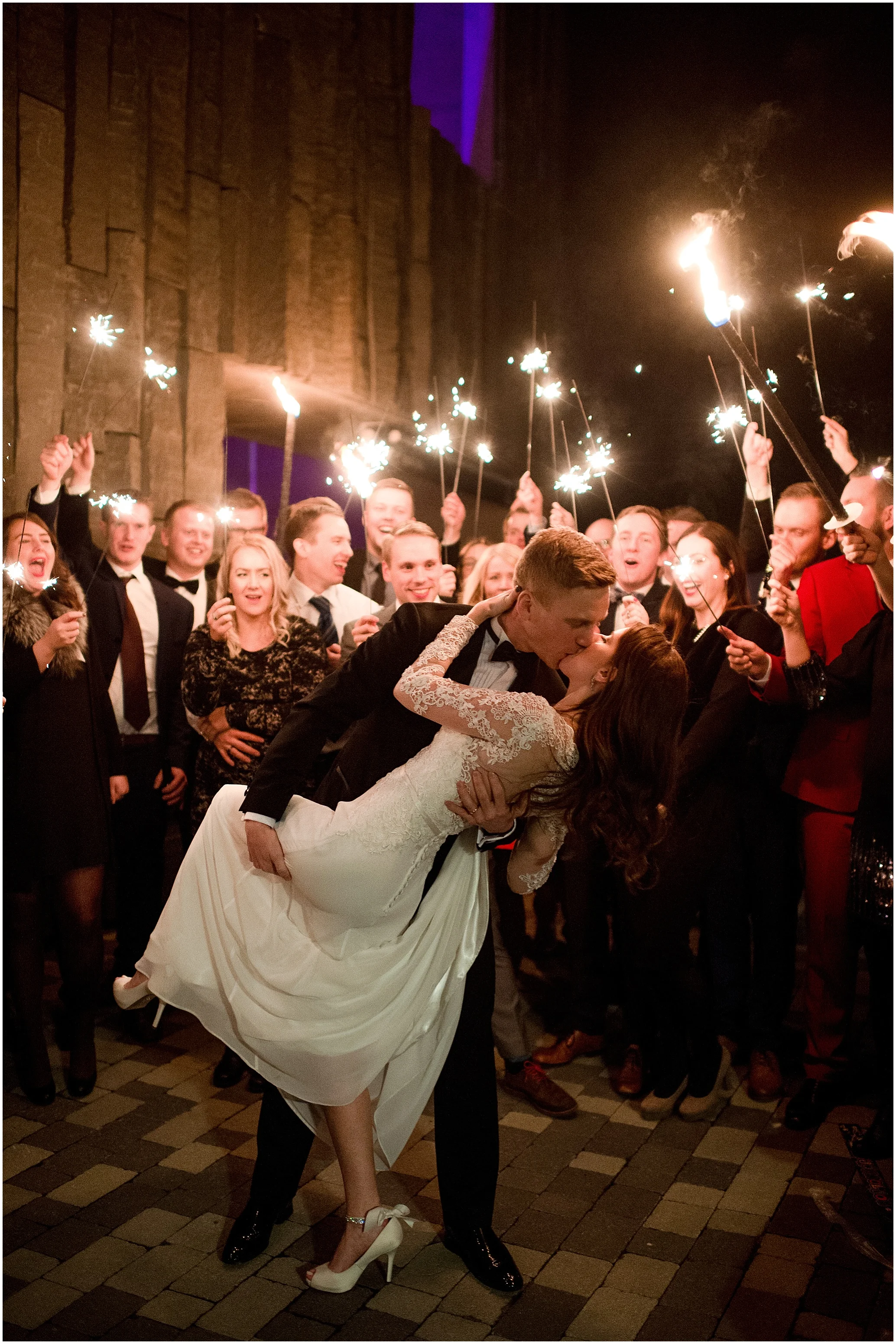 So this might seem obvious but sparkler exits tend to be a last minute thought. And you definitely need to order sparklers ahead of time, versus grabbing them at Walmart the day before. You'll want to have extra long sparklers so that everyone's sparkler is going off at the same time. If they are too short, by the time the last sparkler is lit, the first will be out. And for these photos to turn out best, you want as much sparkler light as possible. So having them all going at the same time is super important! And way more fun! Here is a sparkler you could order that would do the trick!